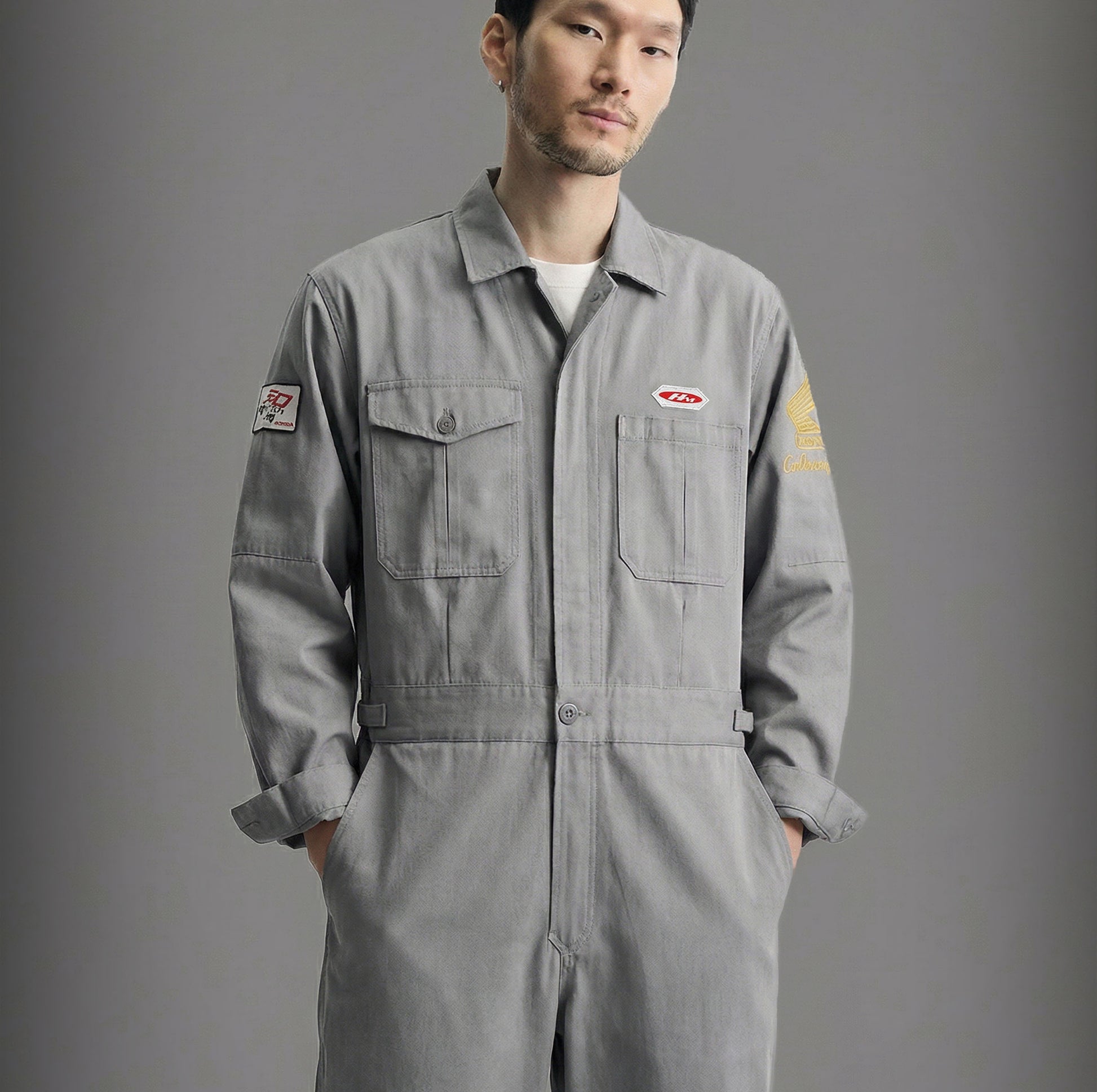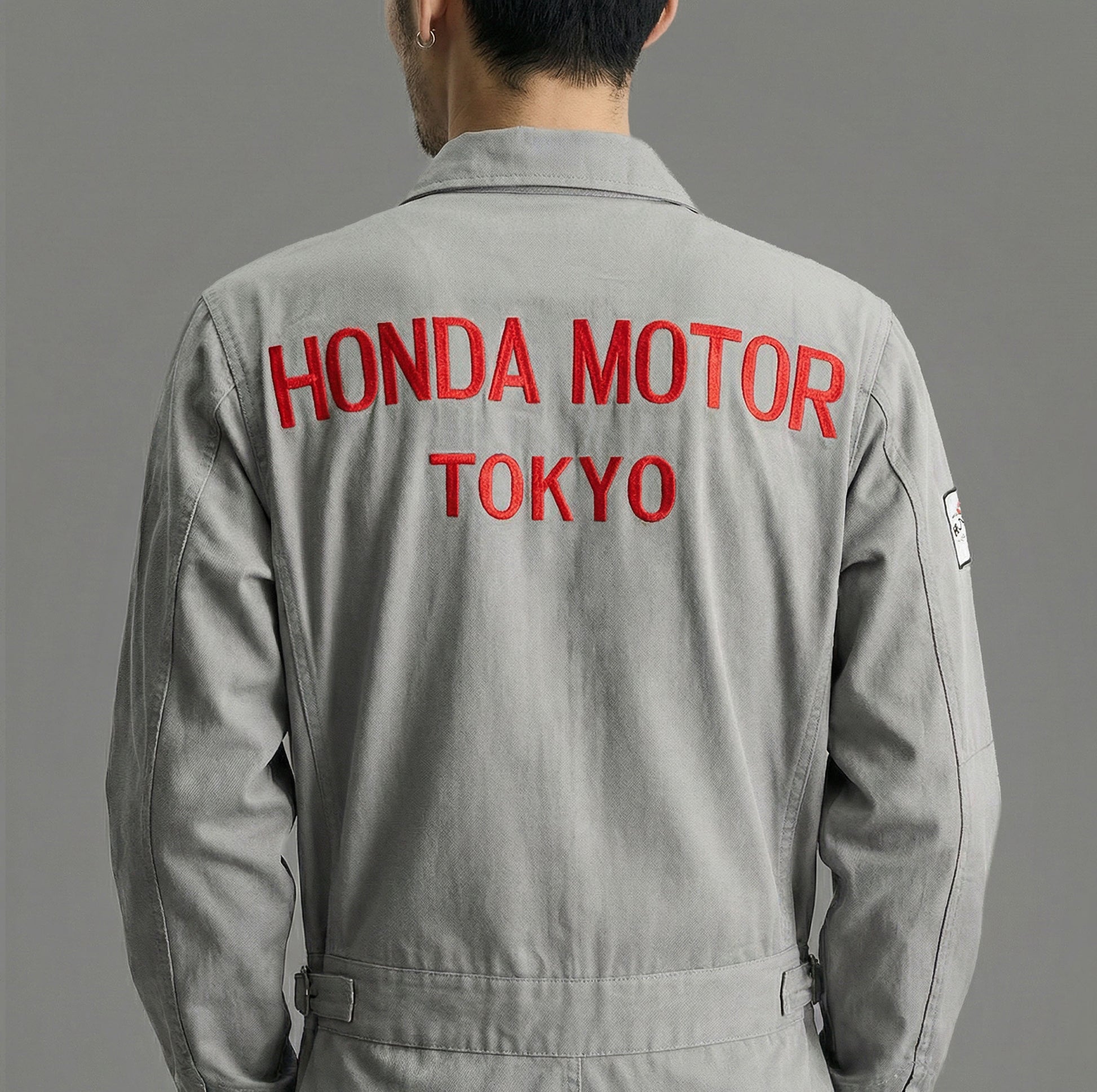 Replica 1965 Honda Formula 1 mechanic's coveralls produced to commemorate the 60th anniversary of Honda's first win in Formula 1. We created these coveralls for Honda engineers to wear at the 2025 Mexican Grand Prix as they prepared the race-winning RA272 for demonstration laps ahead of the 2025 Mexican Grand Prix. Never intended to be offered to the public, but we decided to produce a Limited Edition for pre-order only.