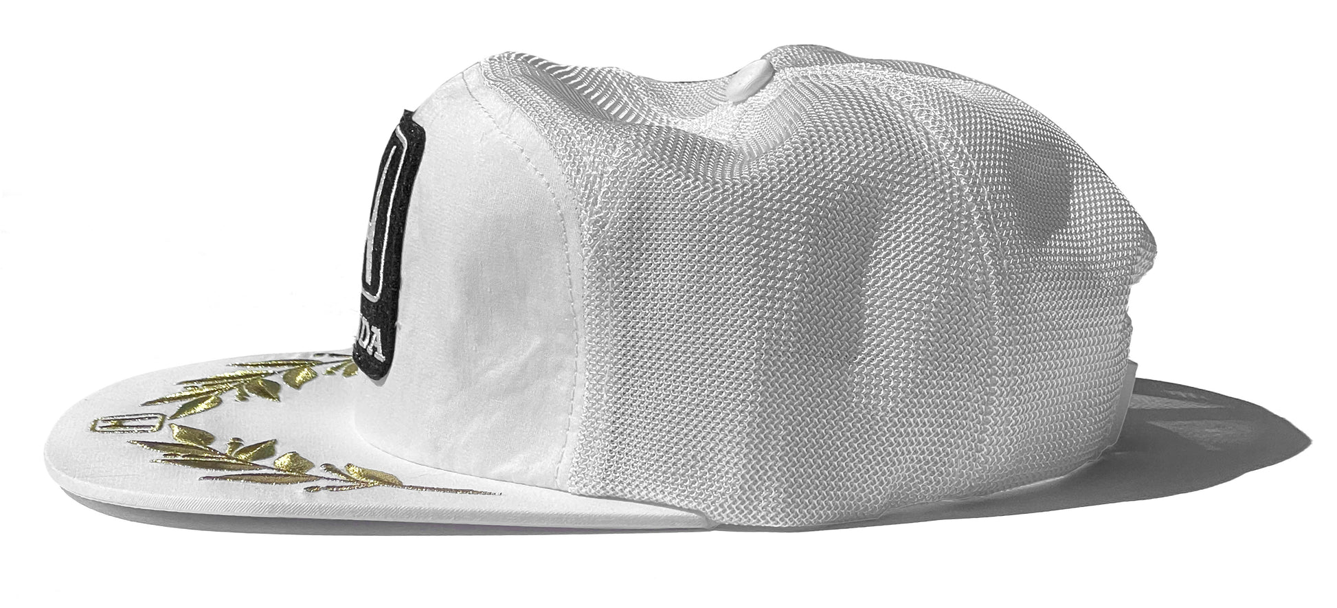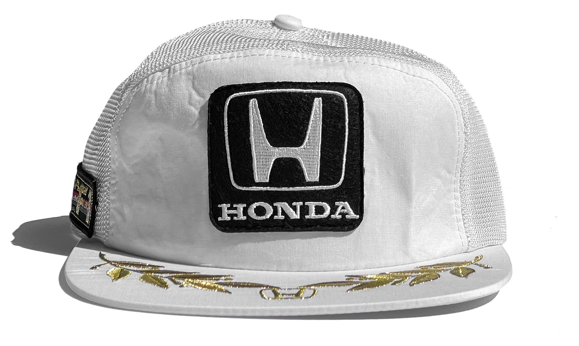 As Honda starting winning races in the 1980's with their turbo engine, this white hat and its winning laurels was created to celebrate those victories. Worn by the drivers, Honda F1 engineers and even Mr. Honda himself, this hat became a mainstay during the the 1986 and 1987 Formula 1 World Championship seasons.